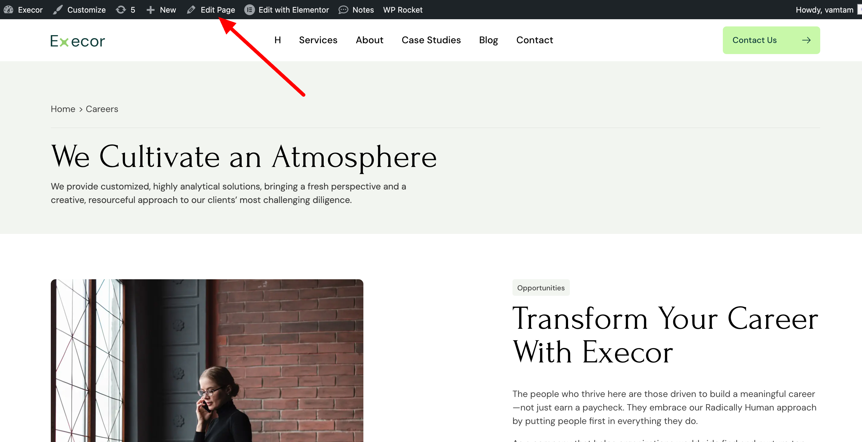 Click on "Edit with Elementor" to customize the page's content.