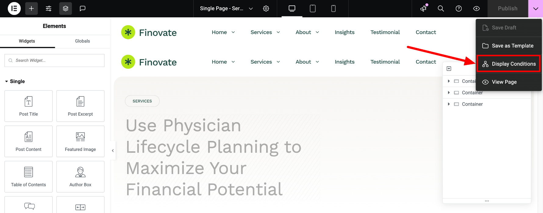 You can edit globally the pages' design, layout, structure, by editing the Single Page Template