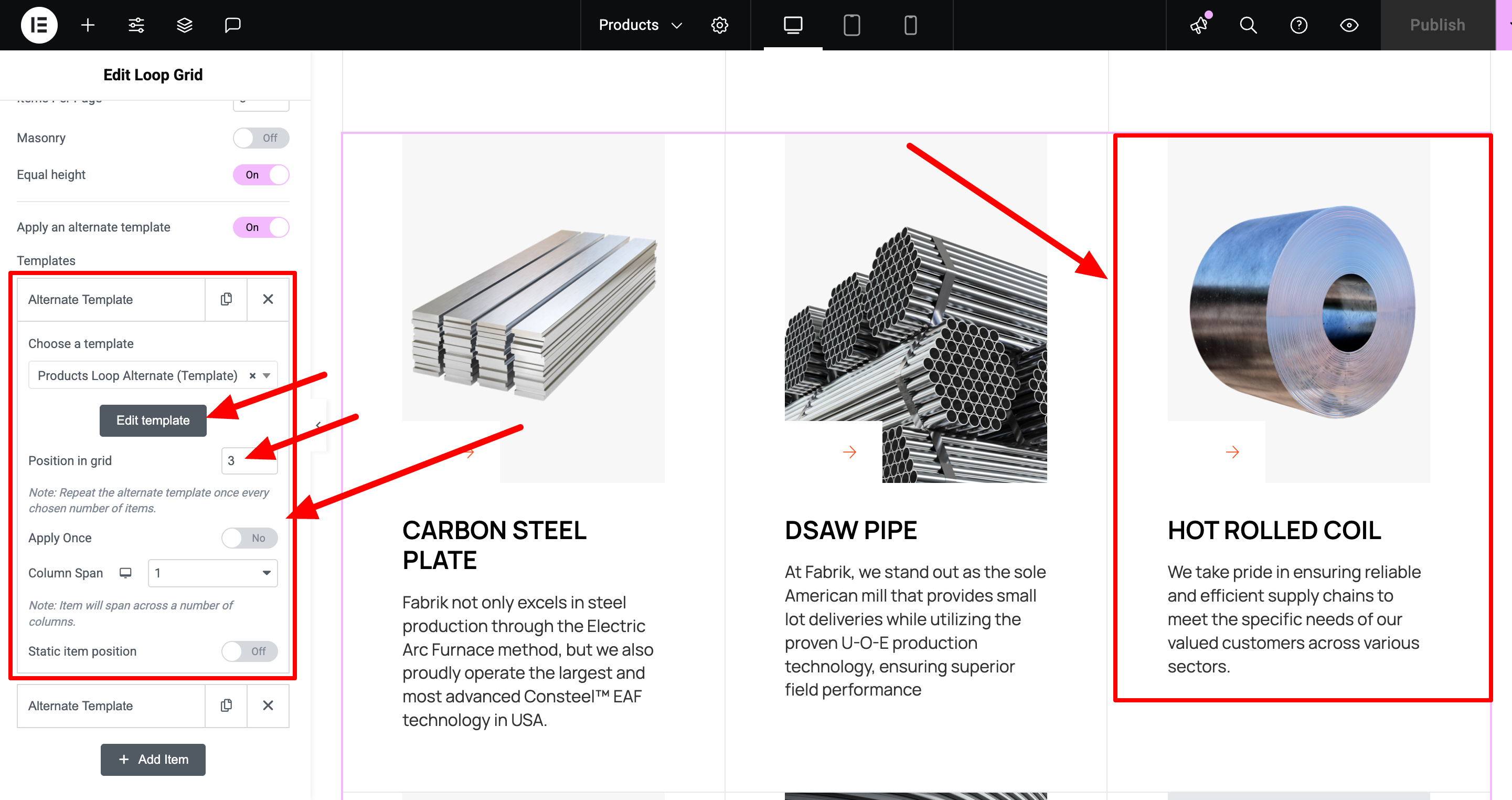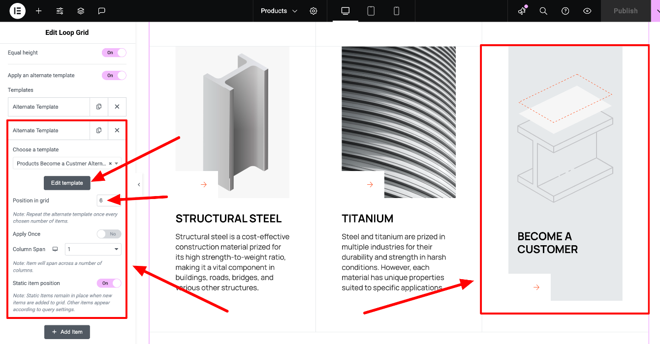 Products Become a Customer Alternate Template applies to every 6-th position of the loop grid:
