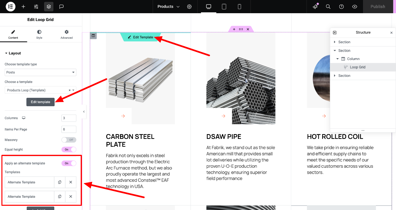 Edit the page with Elementor >> Locate the Loop Grid widget >> Click on "Edit template"