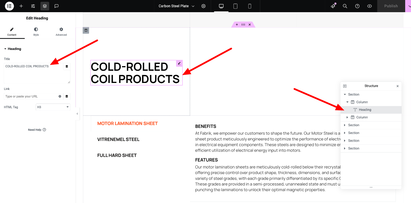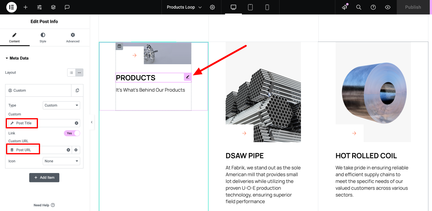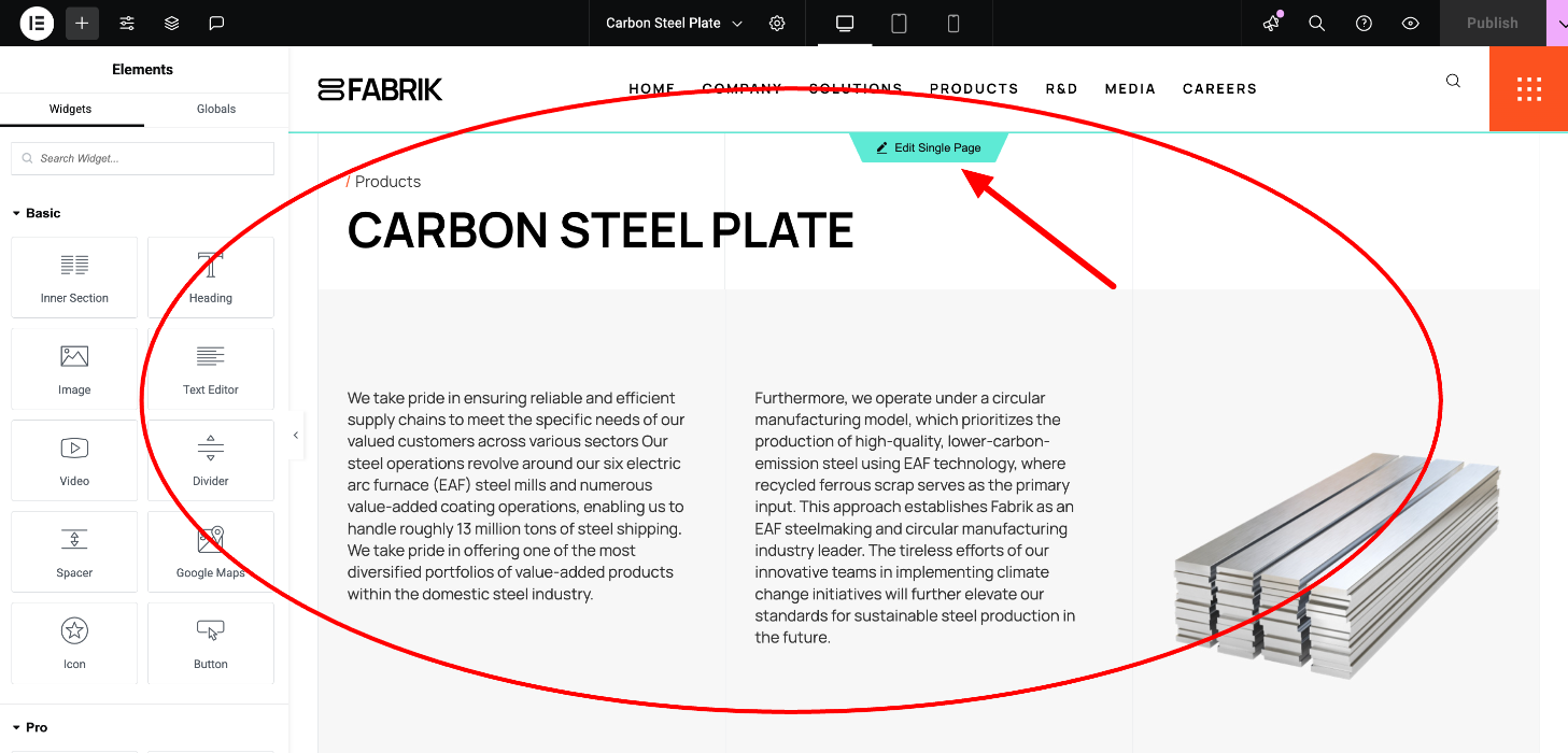 How to edit the product's text and image? - Fabrik Elementor Theme