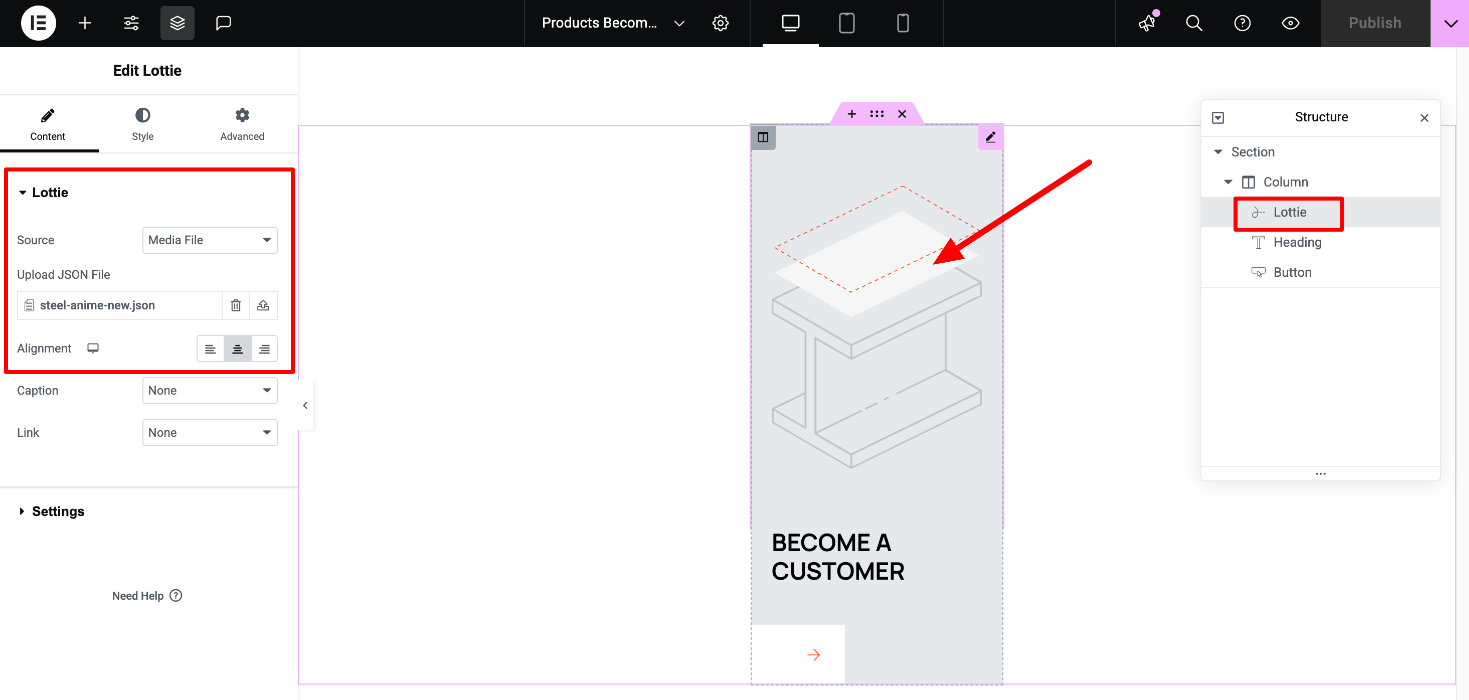 Find more information about the Lottie widget here: https://elementor.com/help/lottie-widget/