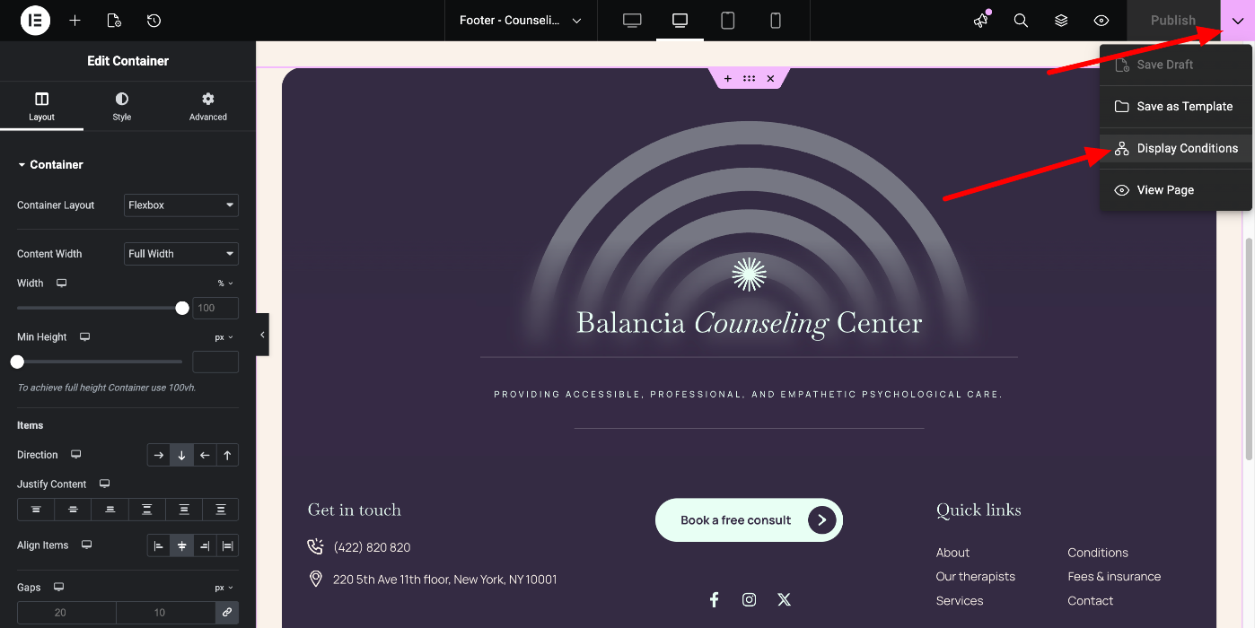 Create Footers Using Elementor
